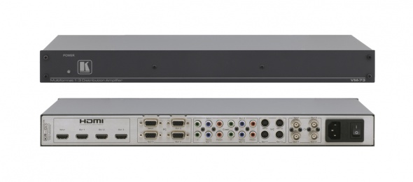 VM-73 — высококачественный усилитель-распределитель для композитного видеосигнала, s-Video (Y/C), компонентного (YUV), компьютерного графического сигналов и HDMI. Прибор представляет собой пять усилителей-распределителей 1:3 в одном корпусе.