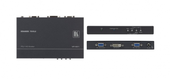 VP-421 — высококачественный цифрой масштабатор компьютерного графического сигнала и HDTV. Прибор выполняет повышающее или понижающее масштабирование и выдает компьютерный графический сигнал или HDTV на 15-контактный разъем HD и разъем DVI