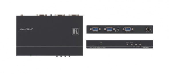 VP-423 — высококачественный цифровой масштабатор для компьютерного графического сигнала с разрешением до WUXGA и 1080p. Прибор может быть использован для организации видеостен с матрицей 4x4 дисплея, при этом для каждого дисплея требуется отдельный VP-423