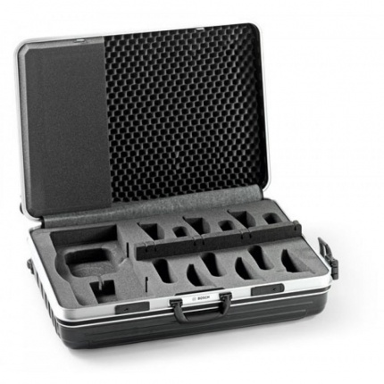 Транспортировочный кейс вмещает один Блок управления и до шести Дискуссионных пультов с короткими и длинными микрофонами. Имеется также место для источника питания и другого дополнительного оборудования.