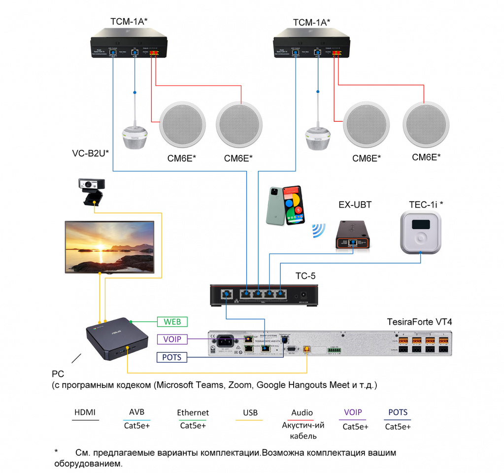 Решение для средней переговорной комнаты. Biamp TesiraFORTE.