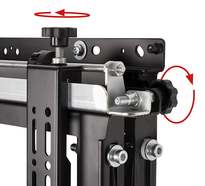 - Крепление с функцией «Pop out» обеспечивает легкий доступ к любому дисплею для быстрого обслуживания. Просто нажмите на экран, чтобы снять блокировку, после чего видеопанель выдвинется. Панель так же легко возвращается на место после завершения технического обслуживания. Микрорегулировки в 8-ми точках для получения идеальной поверхности видеостены