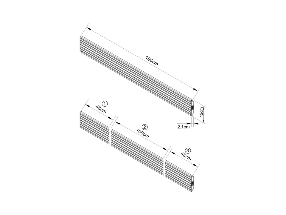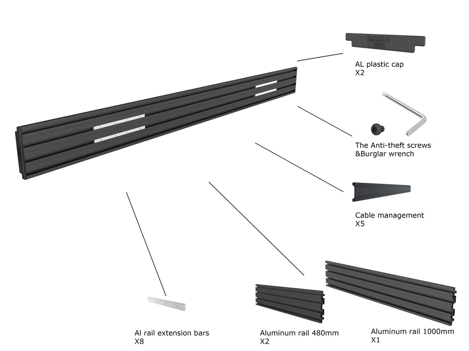 Рейка на два дисплея черного цвета, деталь для серии Pro, алюминий, длина: 196 см.