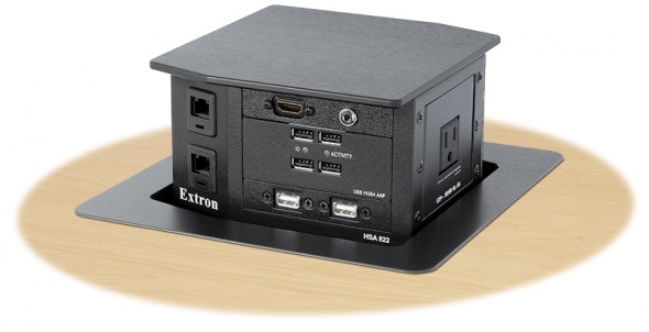 Extron Hideaway® HSA 822 - это двустороннее, вертикально поднимающееся архитектурное решение для незаметного компьютерного видеоинтерфейса и доступа к разъему. Корпус HSA 822 предназначен для удобного монтажа в столы, столы или другую мебель AV и осторожно смешать их с окружающей средой. Прочный и надежный корпус очень компактен, что обеспечивает быструю установку с минимальными усилиями. После установки HSA 822 подходит вплотную к настольному компьютеру, сохраняя разъемы вне поля зрения. Для доступа к разъемам пользователи нажимают на верхнюю часть корпуса. Нажатие вниз отпускает механическую защелку, и HSA 822 медленно поднимается с поверхности, представляя разъемы для использования.