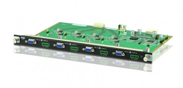 VM7104, является 4-портовой платой ввода с интерфейсом VGA, которая предлагает простой способ маршрутизации между любыми четырьмя источниками аудио/видео и шестнадцатью дисплеями, при использовании в сочетании с модульными матричным коммутатором компании ATEN. VM7104 поддерживает входные сигналы форматов RGBHV / RGBS/ Y CbCr/ YPbPr; стерео аудио-сигнал, который может быть перенаправлен в вывод HDMI-звука. Плата обладает возможностью замены без отключения питания, что совместимо с коммутатором VM1600, поэтому при замене платы не нужно выключать устройство.