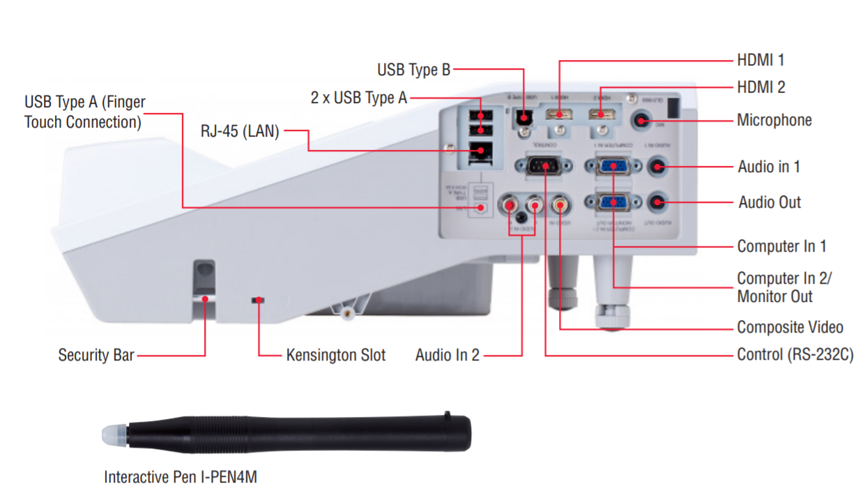 Крепления HAS-WMO3/HAS-WMO5 (Низкое потолочное крепление), TT-03 Table Top Kit, HAS-WB01 (XGA адаптер крепления), HAS-WB02 (WXGA адаптер крепления), Finger Touch Unit FT-01BM, интерактивный стилус I-PEN4M