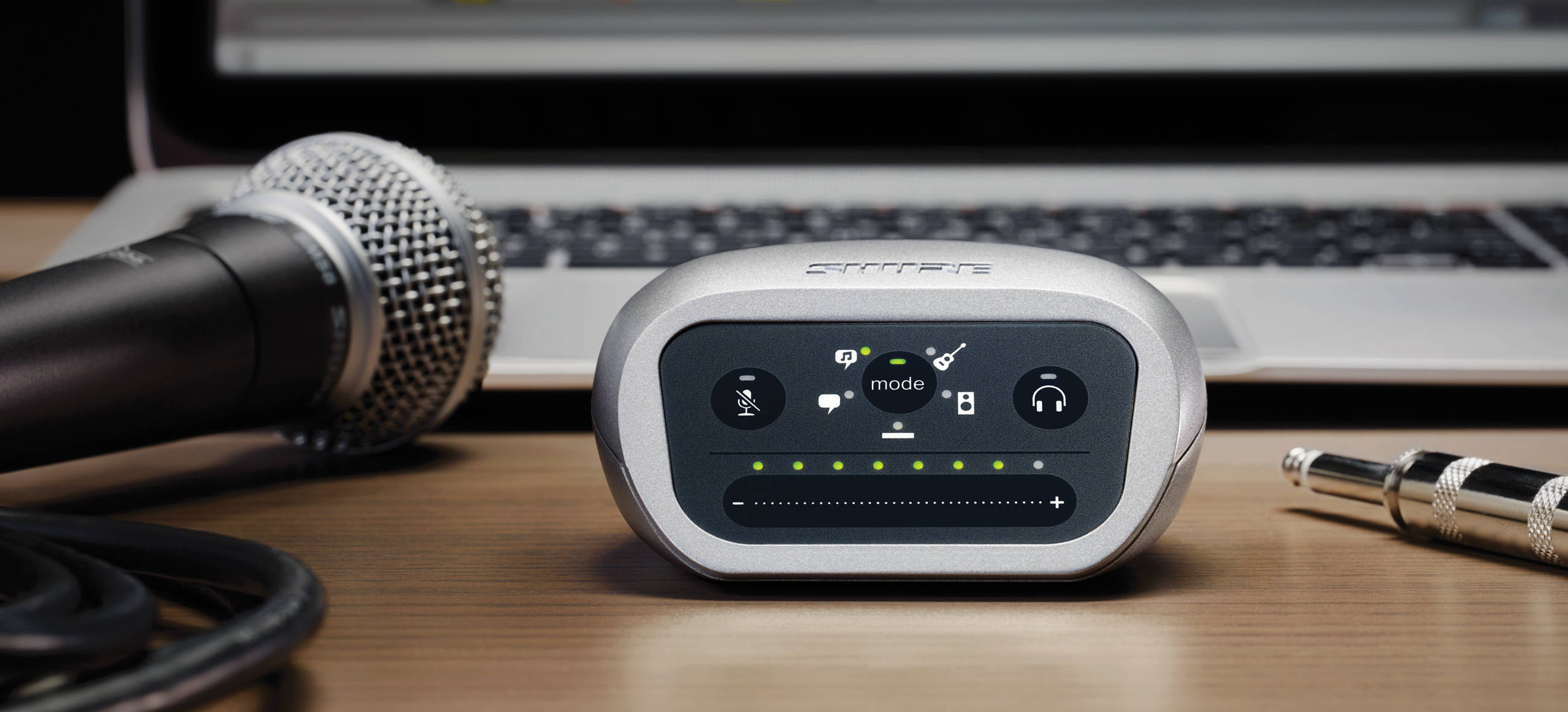 Цифровой аудиоинтерфейс MOTIV™ MVi для подключения профессионального микрофона с разъёмом XLR или инструмента с джеком 6,3 мм к компьютеру или мобильному устройству. Имеет 5 пресетов DSP-процессора для эквалайзера, компрессор, лимитер, регулятор усиления, функцию отключения звука, регулятор громкости, фантомное питание.