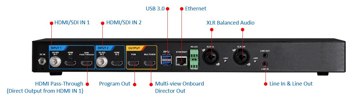 - HDMI, SDI, IP, USB входы и HDMI-проходные разъемы