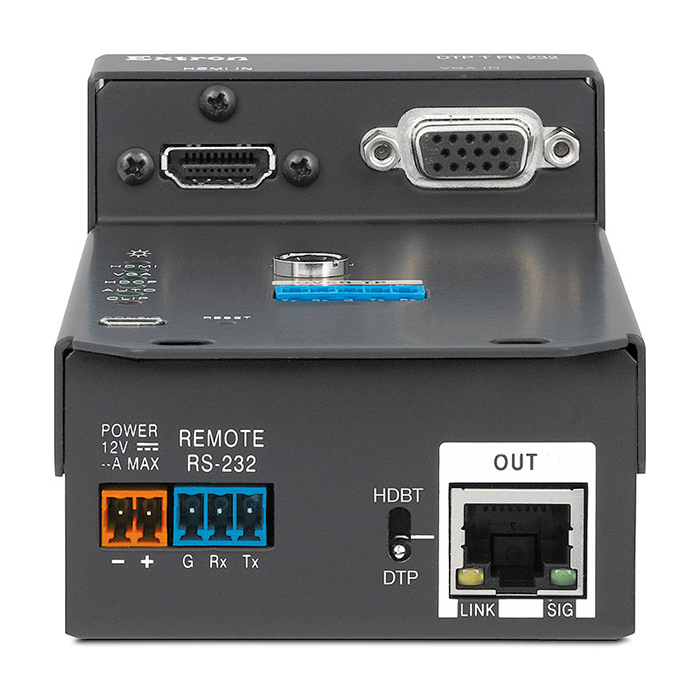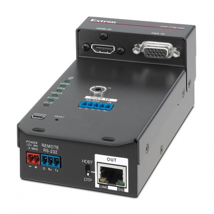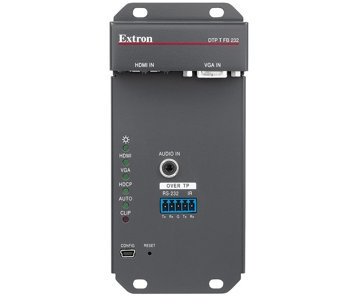 HDCP-совместимый передатчик DTP T FB 232 осуществляет надёжную коммутацию и передачу сигналов HDMI и VGA. DTP T FB 232 может автоматически переключаться между цифровыми и аналоговыми источниками для удобства использования. Сигналы аналогового стереоаудио могут быть эмбедированы в цифровой выходной видеосигнал для передачи через DTP. Чтобы соответствовать требованиям проекта, устройство также имеет опцию передачи аналогового аудио вместе с сигналами видео и управления по тому же экранированному кабелю витой пары устройствам с поддержкой DTP: матричному коммутатору, обычному коммутатору или процессору обработки сигналов. Кроме того, аналоговый вход может быть назначен к любому из двух видеовходов или может следовать за активным видеовходом.