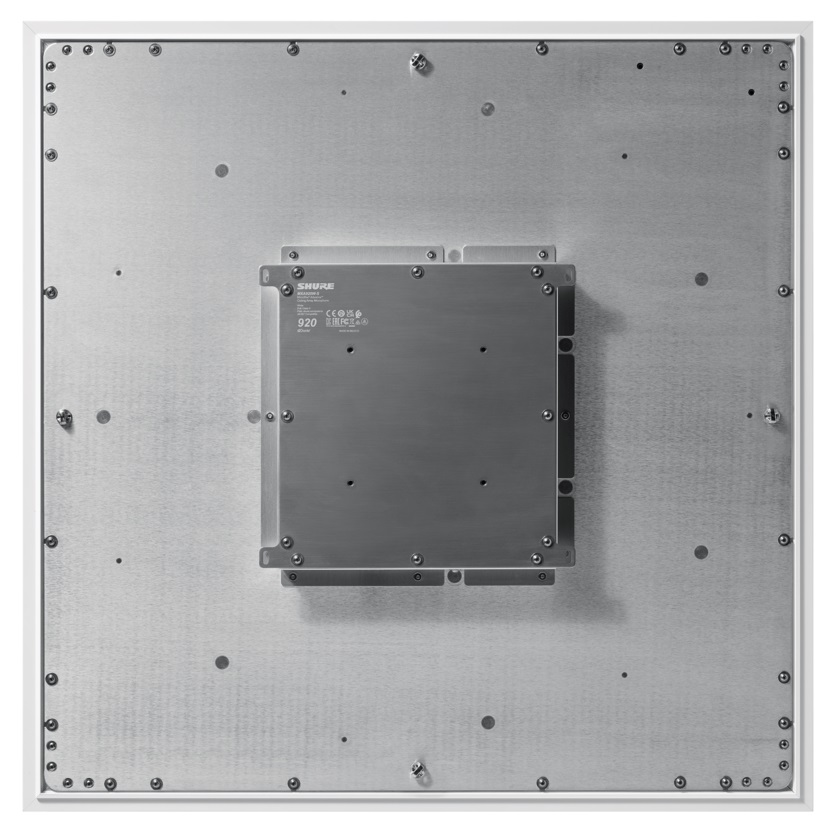 MXA920W-S-60CM – квадратный потолочный микрофонный массив, с системой автоматической настройки покрытия Automatic Coverage, оснащён многоцветной светодиодной индикацией, один разъем для питания, передачи аудио и управления - RJ45, цвет микрофонного массива – белый.
