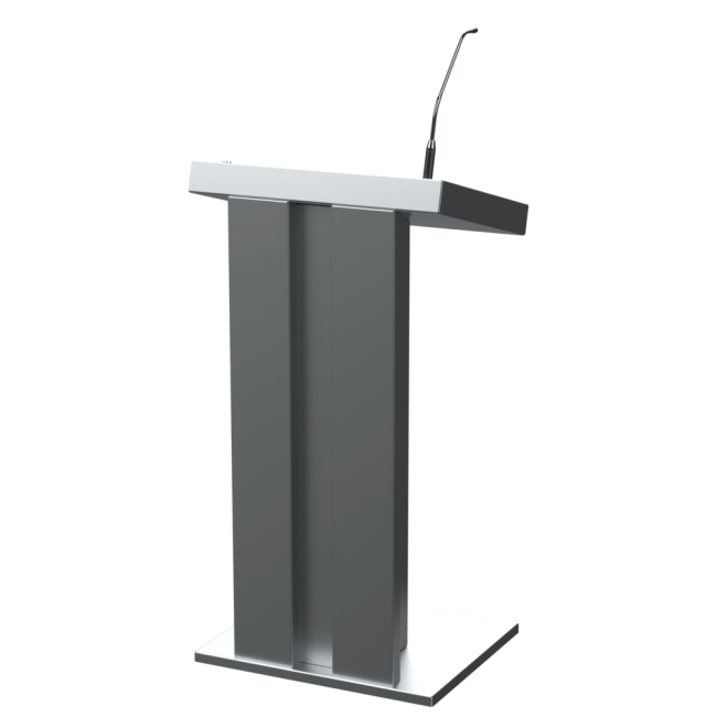 AV-Jota-tribune - это минимализм исполнения, подчёркивающий эстетический вид мультимедийной интерактивной трибуны — основное преимущество этой модели. Изделие стандартно изготавливается из стали.