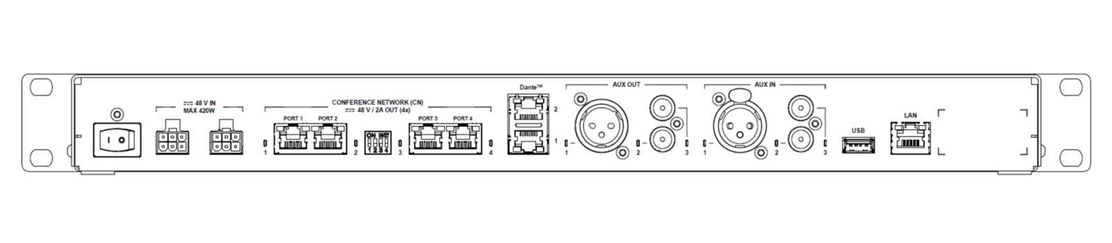 Televic Plixus AE-R с функцией записи представляет собой монтируемое в 19-дюймовую стойку устройство, обеспечивающее всю обработку и маршрутизацию сигналов, необходимую для сетевой конференц-системы Plixus.