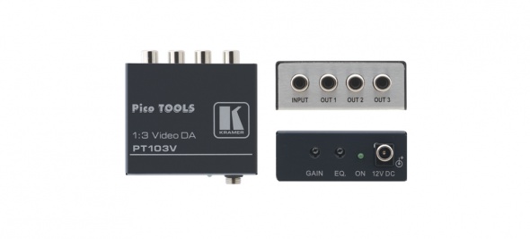 Kramer PT-103V — высококачественный усилитель-распределитель 1:3 для композитного видеосигнала. Прибор имеет один вход, сигнал с которого после буферизации и развязки распределяется на три идентичных выхода.