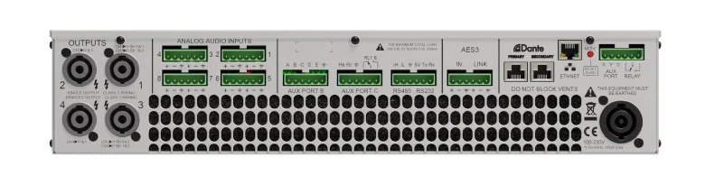 Восьмиканальный усилитель мощности класса D, 20 000 Вт RMS, с DSP и Dante
