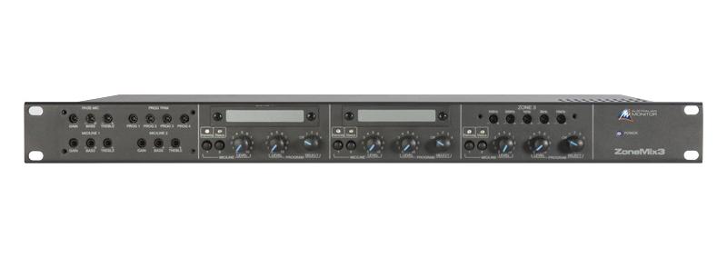 DSP процессор сигналов с 2-мя пейджинговыми + 4-мя балансными микрофонными / линейными + 4 стерео входами, 3 стерео зоны, отдельные выходы моно для зон 1 и 2 с цифровой обработкой и управлением по Ethernet.