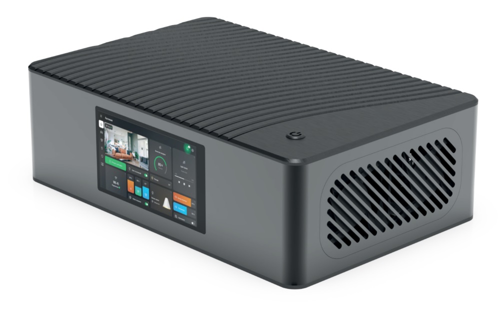 - Переговорная комната со светодиодным экраном или корпоративной LFD панелью, управляемая ВКС камера, запуск пользовательских приложений, вывод презентаций с ноутбука, ВКС-кодеков, поддержка устройств умного дома (напр. шторы, свет, кондиционирование) + управление с сенсорного экрана.